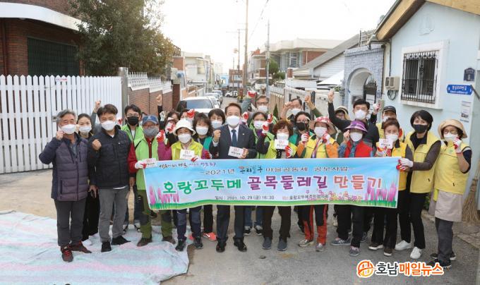 ¸¶À»°øµ¿Ã¼ »ç¾÷ÀÇ ÀÏȯÀ¸·Î ÃßÁøµÈ À̹ø Çà»ç´Â ÁÖ¹ÎÇùÀÇȸ ȸ¿ø, ¸¶À»°øµ¿Ã¼ Ȱµ¿°¡, ÇØ´ç °ñ¸ñ±æ ÁֹΠµî 30¿© ¸íÀÌ Âü¿©ÇÑ °¡¿îµ¥ ÁøÇàµÆÀ¸¸ç ³» Áý ¾Õ ´ë¹®°ú ´ãº¶ô¿¡ ²ÉÀ» ½É°í ³°Àº ´ãÀå¿¡´Â ¸¶À»ÀÇ À̾߱⸦ ´ãÀº º®È¸¦ ±×·Á ¾îµÎ¿î °ñ¸ñ±æÀ» ¹à°í Ä£±ÙÇÑ °ñ¸ñ±æ·Î Å»¹Ù²Þ½ÃÄ×´Ù.