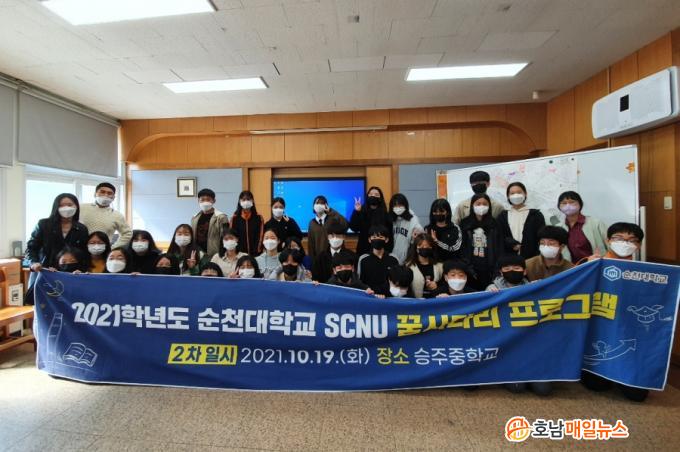 ¿ÃÇØ ¡®SCNU ²Þ »ç´Ù¸® ÇÁ·Î±×·¥¡¯¿¡´Â ¡ãº¸¼º±º µæ·®ÁßÇб³(10.15ÀÏ) ¡ã½ÂÁÖÀ¾ ½ÂÁÖÁßÇб³(10.19ÀÏ) ¡ã¿µ¾Ï±º ½ÅºÏÁßÇб³(10.26ÀÏ) ¡ã°î¼º±º ÇÑ¿ï°íµîÇб³(11.2ÀÏ) µî Àü±³»ýÀÌ 50¸í À̳»ÀÎ ¼Ò±Ô¸ð Çб³ 4°³±³°¡ Âü¿©ÇÏ¿´À¸¸ç, ¸ðó·³ÀÇ ´ë¸é Ȱµ¿À» ÅëÇØ Äڷγª·Î ÀÎÇØ ´Ù¼Ò ºÎÁ·Çß´ø Áø·Î․ÁøÇРüÇè Ȱµ¿ÀÇ ¾Æ½¬¿òÀ» ÇØ¼ÒÇÏ´Â ±âȸ°¡ µÇ¾ú´Ù.