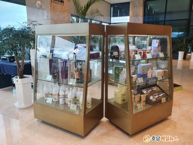 Àü½ÃÀåÀº È£ÅÚ 1Ãþ ·Îºñ ³»ºÎ¿¡ ÀÖÀ¸¸ç, À¯±â³ó½Ò, ½Ò±Í¸®, Àâ°î µî ³ó»ê¹°°ú ¸ñÀ̹ö¼¸, ½Ò±Í¸® ºÐ¸», ½º¹«µð¹Ð, ÀÛµÎÄáÂ÷ µî °¡°ø½Äǰ ¹× Â÷·ù, ±×¸®°í ÅäÇÏÁ£, ¸Å»ýÀÌ µî ¼ö»ê¹° µî °Áø±º ´ëÇ¥ ³ó¼öƯ»ê¹° ¾à 24°³ ǰ¸ñÀ» Àü½Ã¡¤ÆÇ¸ÅÇÑ´Ù.