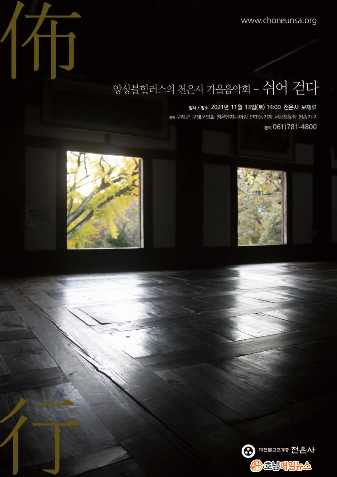 À½¾Çȸ¸¦ ÅëÇØ ¸ö°ú ¸¶À½À» ¾îÁö·´È÷´Â ¹ø³úµéÀ» Àá½Ã³ª¸¶ ³»·Á³õÀ» ¼ö Àֱ⸦ ¹Ù¶ó´Â ¸¶À½¿¡¼ °¡À»À½¾Çȸ¸¦ ÃßÁøÇÑ´Ù°í ¹àÇû´Ù.