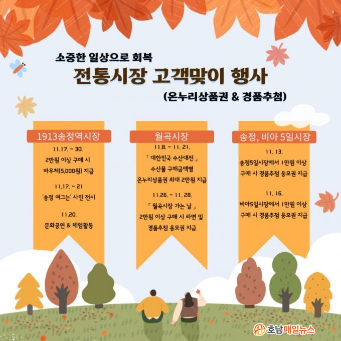 À̿ܿ¡µµ ±¤»ê±¸ ÀüÅë½ÃÀåÀ» ÀÌ¿ëÇÑ ½Ã¹ÎÀº ¸Å´Þ ³Ý° ÁÖ ÀÏ¿äÀÏ·Î ÁöÁ¤µÈ ¡®ÀüÅë½ÃÀå °¡´Â ³¯¡¯ Çà»ç¿Í ¿¬°èÇÏ¿© ½ÃÀåäñ(¾Ö) ´©¸®Áý(www.sijangae.or.kr)¿¡¼ 3¸¸ ¿ø ÀÌ»ó ±¸¸Å ÀÎÁõÀ¸·Î °æÇ° ÀÀ¸ð¿¡ Âü¿©ÇÒ ¼ö ÀÖ´Ù.