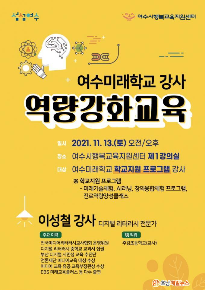¿©¼ö½Ã´Â ¿À´Â 13ÀÏ ¿©¼ö½ÃÇູ±³À°Áö¿ø¼¾ÅÍ ¼Ò¼Ó ¹Ì·¡±â¼ú ±³À°°ü·Ã ÇÁ·Î±×·¥À» ¿î¿µÇÏ´Â Àü¹® °»ç 30¿© ¸íÀ» ´ë»óÀ¸·Î ¿ÀÀü, ¿ÀÈÄ 3½Ã°£¾¿ ±³À°À» ÁøÇàÇÑ´Ù.