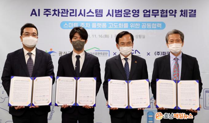 »çÁø¼³¸í=±¤»ê±¸°¡ 16ÀÏ ±¤»ê±¸½Ã¼³°ü¸®°ø´Ü(º»ºÎÀå ½Å¼±È£), ÀΰøÁö´É»ê¾÷À¶ÇÕ»ç¾÷´Ü(´ÜÀå ÀÓÂ÷½Ä), ¢ßÆÄÅ©¿þÀ̺ê(´ëÇ¥ ±èÅÂÀ±)¿Í ¡®AI ÁÖÂ÷°ü¸®½Ã½ºÅÛ ½Ã¹ü¿î¿µ ¾÷¹«Çù¾à¡¯À» ü°áÇß´Ù.