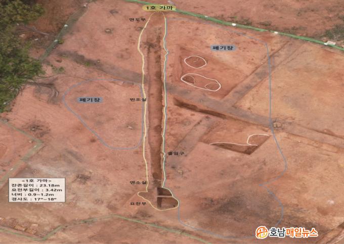 °¡¸¶´Â 10m ³»¿ÜÀÇ ¼Ò±Ô¸ð ÅäÃà¿ä(÷Ïõéé¢ ÁøÈëÀ¸·Î ¸¸µç °¡¸¶)¿Í 20m ³»¿ÜÀÇ ÁßÇü ÅäÃà¿ä°¡ ¹ß°ßµÇ¾ú´Ù. ÁÖº¯ Æó±âÀåÀº ¸ðµÎ 1m ÀÌ»ó µÎÅÍ¿î ÅðÀûÀ» Çü¼ºÇϰí ÀÖ´Ù. Æó±âÀå¿¡¼´Â ûÀÚ¿Í ÈæÀÚ, µµ±â µî ´Ù¾çÇÑ Á¾·ùÀÇ µµÀڱⰡ È®Àεǰí ÀÖ¾î ¿À·£ ±â°£ µµÀڱ⸦ »ý»êÇÏ¿´À½À» ¾Ë ¼ö ÀÖ´Ù.