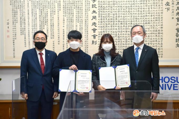 À̳¯ Àü´Þ½Ä¿¡¼´Â À½¾Ç±³À°°ú ¾ÈÇϼ±(4³â) Çлý°ú °æ¿µÇкΠÀå¹®¼º(3³â) ÇлýÀÌ 2021³âµµ ÇϳªÀåÇлýÀ¸·Î ¼±Á¤µÅ ÀåÇÐÁõ¼¸¦ ¹Þ¾Ò´Ù.