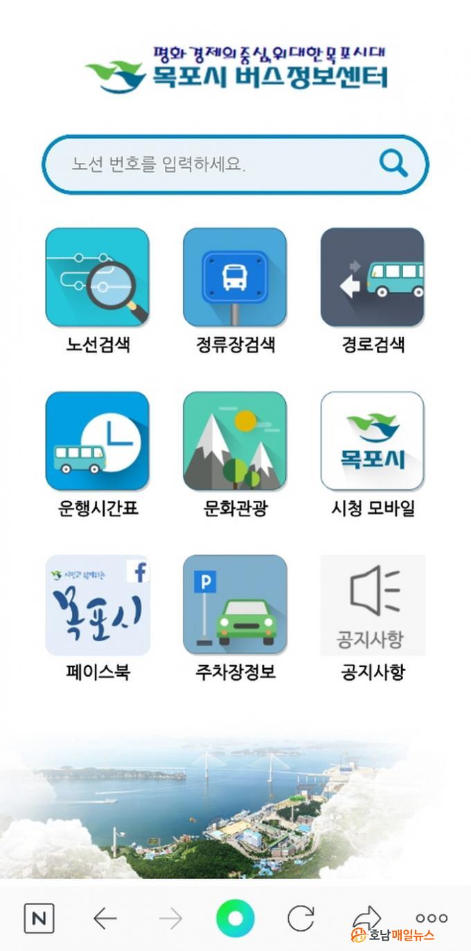 ¶ÇÇÑ, ÀÌ¿ëÀÚ°¡ ÀÌ¿ëÇÏ·Á´Â ¹ö½º ¾ÆÀÌÄÜÀ» ¼±ÅÃÇϸé ÀÚµ¿Â÷ ³»ºñ°ÔÀ̼Çó·³ ¼Óµµ¿Í ¸ñÀûÁö, ´ÙÀ½ Á¤·ùÀå µîÀ» Á÷°üÀûÀ¸·Î ÆÄ¾ÇÇÒ ¼ö ÀÖ´Ù. ÃÊÁ¤¹Ð ¹ö½ºÀ§Ä¡Á¤º¸´Â ÀÎÅÍ³Ý ÁÖ¼Òâ¿¡ ¡®its.mokpo.go.kr¡¯À» ÀÔ·ÂÇϸé È®ÀÎÇÒ ¼ö ÀÖ´Ù.