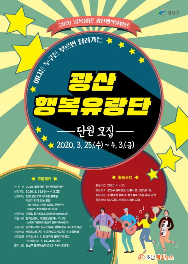 3ÀÎ ÀÌ»óÀ¸·Î ±¸¼ºµÈ Æ®·ÎÆ®, Ç»Àü±¹¾Ç, ´ëÁß°¡¿ä °ø¿¬´Üü°¡ À̹ø °ø¸ð¿¡ Âü¿©ÇÒ ¼ö ÀÖ´Ù. ±¤»ê±¸´Â 1Â÷ ¼·ù¿Í 2Â÷ ¿Àµð¼Ç ½É»ç¸¦ °ÅÃÄ ÃÖÁ¾ 10¿©°³ °ø¿¬´Üü¸¦ ¼±Á¤Çϰí, ¼±Á¤´Üü¿¡´Â °ø¿¬ Ȱµ¿ºñ¿Í ÇÔ²² À½Çâ½Ã¼³ µî °ø¿¬ Àåºñ¸¦ Áö¿øÇÑ´Ù.