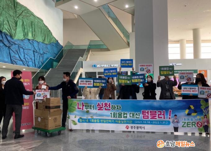 ÇÑÆí, ¼ÛÁø³² ±¤Áֽà ÀÚ¿ø¼øÈ¯°úÀåÀº ¡°°øÁ÷ÀÚµéÀÌ ¾ÕÀå¼¼ 1ȸ¿ëǰ »ç¿ëÀý°¨À» À§ÇÑ ³ë·ÂÀ» º¸ÀÎ´Ù¸é ½Ã¹Îµéµµ ÀÚ¹ßÀûÀ¸·Î ȯ°æÀ» À§ÇÑ ¿òÁ÷ÀÓÀ» º¸ÀÏ °ÍÀ¸·Î ¿¹»óµÈ´Ù¡±¸ç ¡°¾ÕÀ¸·Îµµ 1ȸ¿ëǰÀ» ÁÙÀÏ ¼ö ÀÖ´Â ½ÃÁ¤À» ÆîÄ¡±â À§ÇØ ´õ¿í ³ë·ÂÇϰڴ١±°í ¸»Çß´Ù.