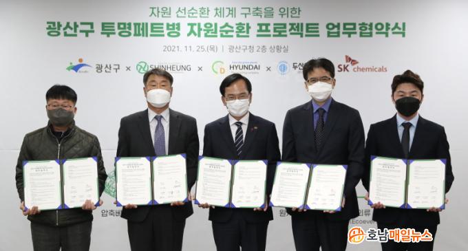 ±¤»ê±¸´Â 25ÀÏ SKÄɹÌÄ®, µÎ»êÀÌ¿£Æ¼, ½ÅÈïÀÚ¿ø, Çö´ëȯ°æ µî 4°³ ±â¾÷°ú Åõ¸íÆäÆ®º´ °íǰÁú ÀçȰ¿ëÀ» À§ÇÑ ¾÷¹«Çù¾àÀ» ü°áÇß´Ù.