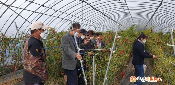ÇØ³²±ºÀº ¿ÃÇØ È¿ø¸é°ú ¼ÛÁö¸é µÎ ³ó°¡ÀÇ °íÃß Àç¹è½Ã¼³ ¾à 0.2ha ¸éÀû¿¡ ¹«ÀÎ ¹æÁ¦½Ã½ºÅÛÀ» ½Ã¹ü ¼³Ä¡Çß´Ù.