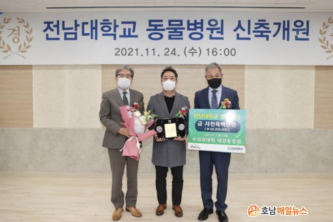 Àü³²´ë ¹Ú³²¿ë ¸í¿¹±³¼ö´Â 11¿ù 24ÀÏ ¿¸° Àü³²´ëÇб³ µ¿¹°º´¿ø ½ÅÃà °³¿ø½Ä¿¡ Âü¼®ÇØ ´ëÇйßÀü±â±Ý 1¾ï ¿øÀ» Á¤¼ºÅà ÃÑÀå¿¡°Ô Àü´ÞÇÑ µÚ, ¡°¼ö½Ê ³â°£ ¸ö´ã¾Ò´ø ¼öÀǰú´ëÇп¡ ¾î·Æ°Ô ¸¶·ÃÇÑ ¹ßÀü±â±ÝÀ» ±âºÎÇÏ°Ô µÅ ¸Å¿ì ±â»Ú´Ù.¡±¸ç ¡°¼öÀÇÇÐ Àü¹® Àη ¾ç¼º¿¡ º¸ÅÆÀÌ µÇ¾úÀ¸¸é ÇÑ´Ù.¡±°í ¸»Çß´Ù.