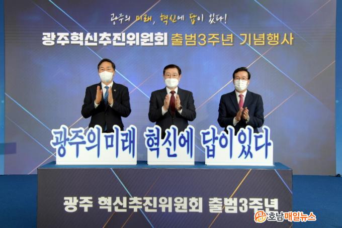 ¡®±¤ÁÖ ¹Ì·¡, Çõ½Å¿¡ ´äÀÌ ÀÖ´Ù¡¯¶ó´Â ½½·Î°ÇÀ¸·Î ÁøÇàµÈ À̳¯ ±â³äÇà»ç´Â ½Ã¹Î»çȸ´Üü °ü°èÀÚ µî °¢°è ½Ã¹Î°ú À̿뼷 ½ÃÀå, ±è¿ëÁý ½ÃÀÇȸ ÀÇÀå, Àӹ̶õ ½ÃÀÇ¿ø, Çõ½ÅÃßÁøÀ§¿øÈ¸ À§¿ø, °ü°è°ø¹«¿ø µîÀÌ Âü¼®ÇØ Çõ½ÅÃßÁøÀ§°¡ ±Ç°í‧Á¦¾ÈÇÑ ´ëÇ¥Àû ½ÃÁ¤Çõ½Å ÁÖ¿ä ¼º°ú¸¦ ½Ã¹Î°ú °øÀ¯Çϰí, ¡®±¤ÁÖÀÇ »õ·Î¿î µµ¾àÀ» À§ÇÑ ¹Ì·¡Çõ½Å¾È(ÀÌÇÏ ¡°¹Ì·¡Çõ½Å¾È¡±)¡¯À» ¹ßÇ¥Çß´Ù.