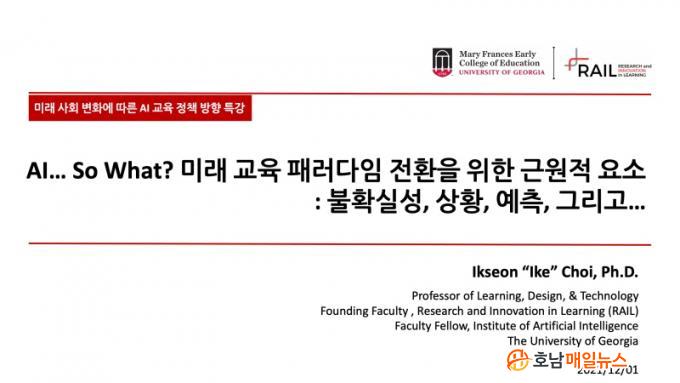 Äڷγª19 »óȲ ¶§¹®¿¡ ÇöÀå Âü¿© ÀοøÀ» ÃÖ¼ÒÈÇÑ °¡¿îµ¥ ´ë¸é¡¤ºñ´ë¸é È¥ÇÕ ¹æ½ÄÀ¸·Î ¿¸° À̳¯ ±³À°Àº ¹Ì±¹ Á¶Áö¾Æ´ëÇб³ ÃÖÀͼ± ±³¼ö¸¦ ÃʺùÇØ ¡®AI... So What? ¹Ì·¡ ±³À° ÆÐ·¯´ÙÀÓ ÀüȯÀ» À§ÇÑ ±Ù¿øÀû ¿ä¼Ò: ºÒÈ®½Ç¼º, »óȲ, ¿¹Ãø, ±×¸®°í... ¡¯¶ó´Â ÁÖÁ¦·Î ÁøÇàµÆ´Ù.