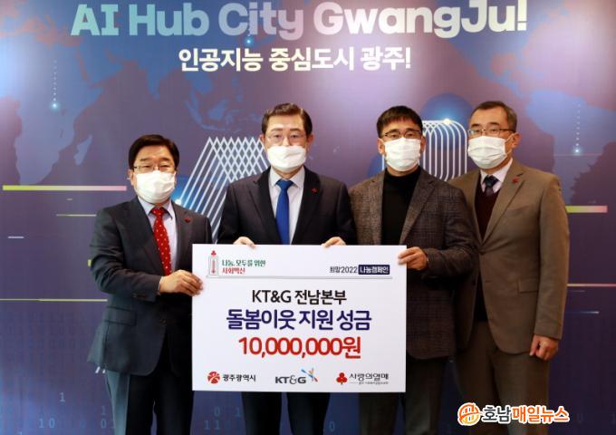 KT&G Àü³²º»ºÎ´Â »çȸº¹Áö½Ã¼³ ÇöÀå Áö¿øÀ» À§ÇÑ ¼º±Ý 1000¸¸¿øÀ» Àü´ÞÇß´Ù. KT&G Àü³²º»ºÎ´Â Áö³ÇØ 1000¸¸¿ø, 2019³â 1000¸¸¿ø µî Áö¼ÓÀûÀÎ ±âºÎ Ȱµ¿À» À̾î¿À°í ÀÖ´Ù.