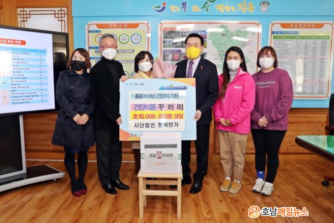 Àü´Þ½Ä¿¡ Âü¼®ÇÑ ¹ÚÈñö ÀÌ»çÀåÀº ¡°ÃßÀ§¿Í Äڷγª·Î ÀÎÇØ °æÁ¦Àû ¾î·Á¿òÀ» °Þ°í Àִ Ȧ¸ö ¾î¸£½ÅµéÀÇ °á½Ä ¿¹¹æ°ú °Ç° °ü¸®¸¦ À§ÇØ À̹ø °Ç°½Ä Áö¿øÀ» ÇÏ°Ô µÆ´Ù¡±¸ç ¡°ÀúÈñ°¡ ÁغñÇÑ µû¶æÇÑ ¹ä Çѳ¢·Î ¾î¸£½ÅµéÀÌ Ãß¿î °Ü¿ïÀ» ³ª´Âµ¥ ÈûÀÌ µÇ¼ÌÀ¸¸é ÇÑ´Ù¡±°í ÀüÇß´Ù.