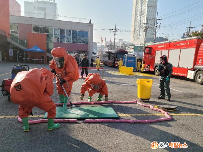 Äڷγª19 »óȲÀ» °í·ÁÇØ ±¤ÁÖ°æÂûû µî 5°³ À¯°ü±â°üÀº ºñ´ë¸é ¹æ½ÄÀ¸·Î, 119Ư¼ö±¸Á¶´ÜÀº Ư¼ö±¸Á¶´ë û»ç¿¡¼ ´ë¿ø 30¿©¸í°ú È»ý¹æ ºÐ¼®Â÷ µî Àåºñ 7´ë¸¦ µ¿¿øÇØ Ãʵ¿ ´ëÀÀÈÆ·ÃÀ» ½Ç½ÃÇß´Ù.