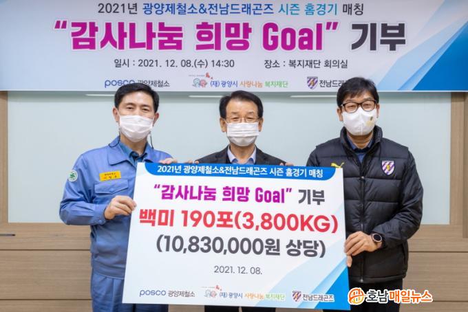 ÇÑÆí, ±¤¾çÁ¦Ã¶¼Ò¿Í Àü³²µå·¡°ïÁî°¡ ¡®12³â '°¨»ç³ª´® Èñ¸Á Goal ±âºÎ' MOU¸¦ ü°áÇÑ µÚ·Î Ȩ °æ±â¿¡¼ ³ª¿Â °ñÀº ÃÑ 225°ñ·Î½á, ÇöÀç±îÁö 45,000kgÀÇ ½ÒÀ» Áö¿ª»çȸ ÀÌ¿ôµé¿¡°Ô Àü´ÞÇϰí ÀÖ´Ù.