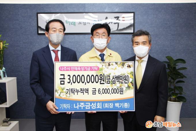 ³ªÁֽô 8ÀÏ ¡®³ªÁÖ ±Ý¼ºÈ¸¡¯¿¡¼ ÀÎÀçÀ°¼º±â±Ý 300¸¸¿øÀ» ³ªÁÖ±³À°ÁøÈïÀç´Ü¿¡ ±âŹÇß´Ù°í ¹àÇû´Ù.