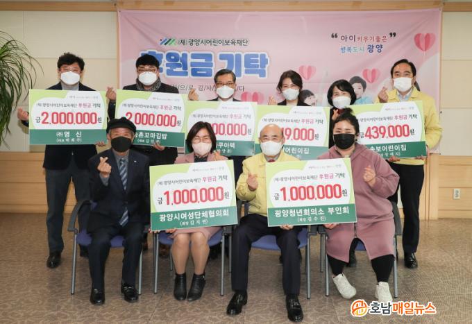 (Àç)±¤¾ç½Ã¾î¸°À̺¸À°Àç´ÜÀº Áö³ 9ÀÏ Á¤Çöº¹ ±¤¾ç½ÃÀå, °¿ëÀç »óÀÓÀÌ»ç, ±âŹÀÚ µî 10¿© ¸íÀÌ Âü¼®ÇÑ °¡¿îµ¥ ÈÄ¿ø±Ý ±âʽÄÀ» °¡Á³´Ù. ±âʽÄÀº ¾Æ·¡¿Í °°ÀÌ ÃÑ 8°³ ´Üü¿Í ¾÷ü¿¡¼ 1,308¸¸ 8õ ¿øÀÇ ¼ÒÁßÇÑ ÈÄ¿ø±ÝÀ» Àü´ÞÇß´Ù.