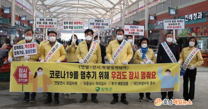 ÇÑÆí, ÇÔÆò±ºÀº À̳¯ ¿ÀÀü ÇÔÆòõÁöÀüÅë½ÃÀå ÀÏ¿ø¿¡¼ Äڷγª19 È®»ê ¹æÁö¸¦ À§ÇÑ ¡®¿¬¸»¿¬½Ã À̵¿‧¸ðÀÓ‧Çà»ç ÀÚÁ¦¡¯ Ä·ÆäÀÎÀ» °³ÃÖÇß´Ù. Ä·ÆäÀο¡´Â ÀÌ»óÀÍ ÇÔÆò±º¼ö, ±èÇü¸ð ÇÔÆò±ºÀÇȸ ÀÇÀåÀ» ºñ·ÔÇÑ 10¿© ¸íÀÌ Âü¿©ÇØ À峯À» ¸ÂÀº ÀüÅë½ÃÀå°ú »ó°¡¿¡¼ ÁøÇàµÆ´Ù.
