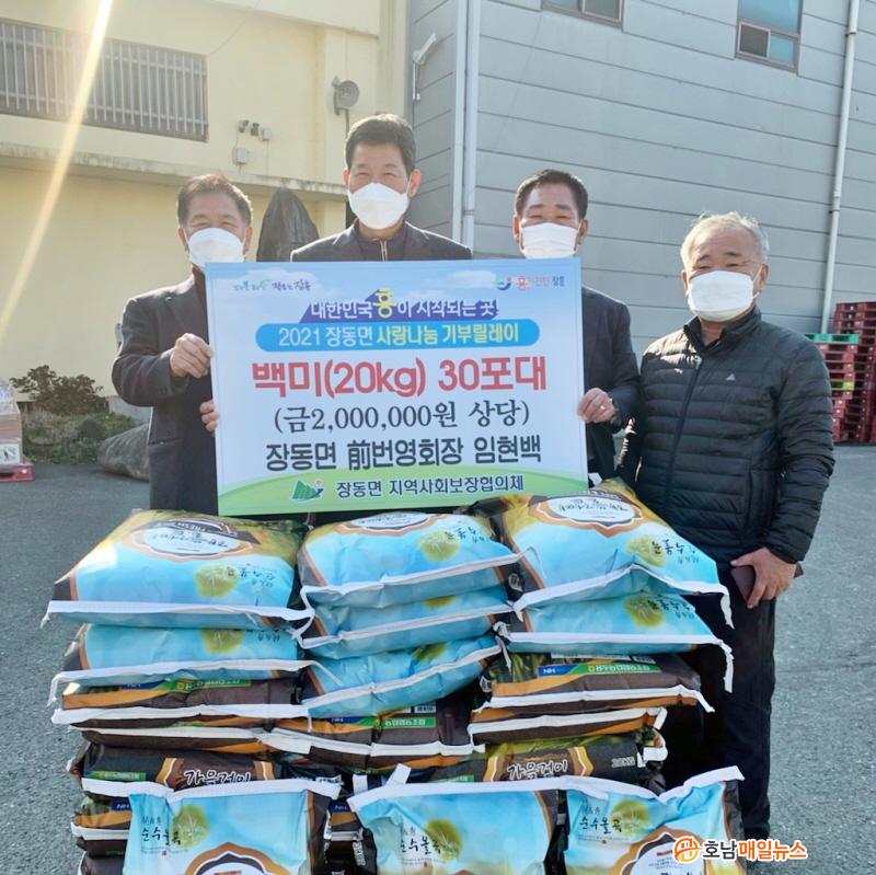 Áö³ 13ÀÏ Á¦22´ë À嵿¸é îñ¹ø¿µÈ¸Àå ÀÓÇö¹é(65¼¼) ¾¾°¡ 200¸¸ ¿ø »ó´çÀÇ ¹é¹Ì(20kg) 30Æ÷´ë¸¦ ±âºÎÇÏ¿© ¡®2021 À嵿¸é »ç¶û³ª´® ±âºÎ¸±·¹ÀÌ¡¯ Á¦16È£°¡ µÇ¾ú´Ù.
