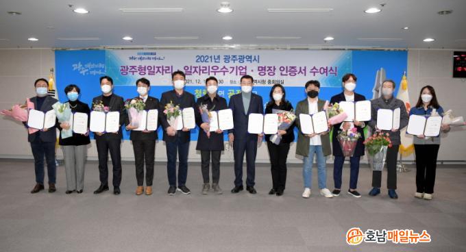 ±¤ÁÖÇüÀÏÀÚ¸® ±â¾÷ ÀÎÁõÀº ÀûÁ¤ÀÓ±Ý, ÀûÁ¤±Ù·Î½Ã°£, ³ë»çÃ¥ÀӰ濵, ¿ø‧ÇÏû°ü°è °³¼±ÀÇ 4´ë ÁöÇ¥ Áß ÀÎÁõÆò°¡¿¡¼ 2°³ ÀÌ»ó ÁöÇ¥¿¡¼ 70Á¡ ÀÌ»óÀ» ȹµæÇÑ ±â¾÷À» ¹ß±¼‧À°¼ºÇÏ´Â ½ÃÃ¥ÀÌ´Ù.