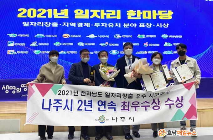 ³ªÁÖ½Ã(½ÃÀå °ÀαÔ)´Â 16ÀÏ Àü³²µµÃ» ¿ÕÀνǿ¡¼ °³ÃÖµÈ ¡®2021³â ÀÏÀÚ¸®¡¤ÅõÀÚÀ¯Ä¡ ÇѸ¶´ç¡¯¿¡¼ 22°³ ½Ã¡¤±º Áß ÀÏÀÚ¸® âÃâ ºÐ¾ß ÃÖ¿ì¼ö»ó, ÅõÀÚÀ¯Ä¡ ºÐ¾ß Àå·Á»óÀ» °¢°¢ ¼ö»óÇß´Ù°í ¹àÇû´Ù.