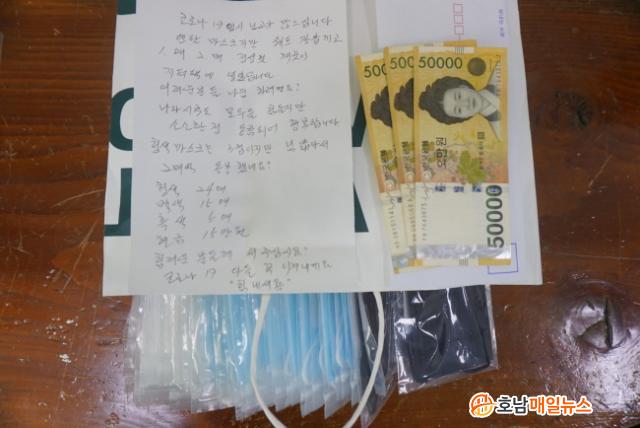 À͸íÀÇ ¿ÀÀü ±âºÎÀÚ°¡ ³²±â°í°£ Á¾ÀÌ»óÀÚ ¾È¿¡´Â ¡®¸ðµÎµé ÈûµéÁö¸¸ ¼Ò¼ÒÇÑ Á¤ µ¿Âü(ÇØ) ÇູÇÕ´Ï´Ù ¡¦ Èû°Ü¿î ºÐµé²² ½áÁֽʽÿÀ ¡¦ Äڷγª 19 ´Ùµé ²À À̰ܳ»°Ô¿ä¡¯¶ó´Â ÀÀ¿ø ¸Þ½ÃÁö°¡ ´ã±ä ¼Õ ÆíÁö¿Í û¡¤¹é¡¤Èæ»ö ¸¶½ºÅ© 44¸Å, Çö±Ý 15¸¸¿øÀÌ µé¾îÀÖ¾ú´Ù.