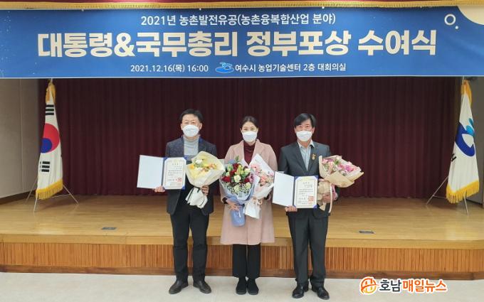 Æ÷»ó Á¾·ùº°·Î ¿©¼ö ³²ÁÖÇö °Å¹®µµÇØÇ³¾¦¿µ³óÁ¶ÇÕ¹ýÀÎ ´ëÇ¥°¡ ´ëÅë·É ǥâ, ¼Û°æÈ¯ Àü³²³óÃÌÀ¶º¹ÇÕ»ê¾÷Áö¿ø¼¾ÅÍÀåÀÌ ±¹¹«ÃѸ® ǥâ ¿µ¿¹¸¦ ¾È¾Ò´Ù. ³ó¸²Ãà»ê½ÄǰºÎ Àå°ü»óÀº ¿©¼ö ÇÑÇØ°æ ³ó¾÷ȸ»ç¹ýÀÎ ÇâÀ¯¹Ì°¡(ÁÖ) ´ëÇ¥¿Í ÇØ³²±º ¹Ú¼±Èñ ÆÀÀåÀÌ °¢°¢ ¼ö»óÇß´Ù.