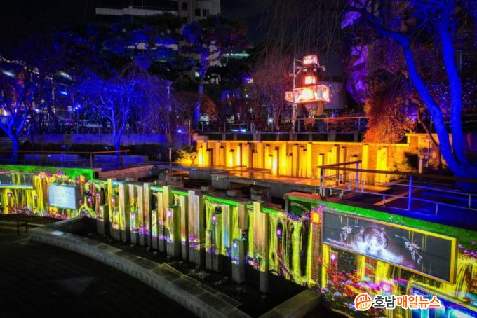 ÁÖ°£¿¡´Â ¹ß±¤´ÙÀÌ¿Àµå(LED) Á¶Çü¹°ÀÎ ³ªºñ»óÀÚ¿Í ¹ß±¤´ÙÀÌ¿Àµå(LED) º¥Ä¡ÀÎ ³ªºñ½°Å͸¦ º¼ ¼ö ÀÖ°í, ¾ß°£¿¡´Â 35m ³ÊºñÀÇ Àΰø ÆøÆ÷ÀÎ º®Ãµ¿¡ ÇÁ·ÎÁ§¼Ç ¸ÊÇÎÀ¸·Î Ç¥ÇöÇÑ ³ªºñÆøÆ÷¸¦ Áñ±æ ¼ö ÀÖ´Ù. ¾Æ¿ï·¯ ¹Ì·¡ ±â¼úÀ» Á¢¸ñ½ÃŲ Ȧ·Î±×·¥ ¿µ»ó°ú ¹Ý¦ÀÌ´Â º°ºûÀÌ ¸ÎÈù ·¹ÀÌÀú ¼îÀÎ º°ºûÁ¤¿øµµ °ü¶÷ÇÒ ¼ö ÀÖ´Ù.