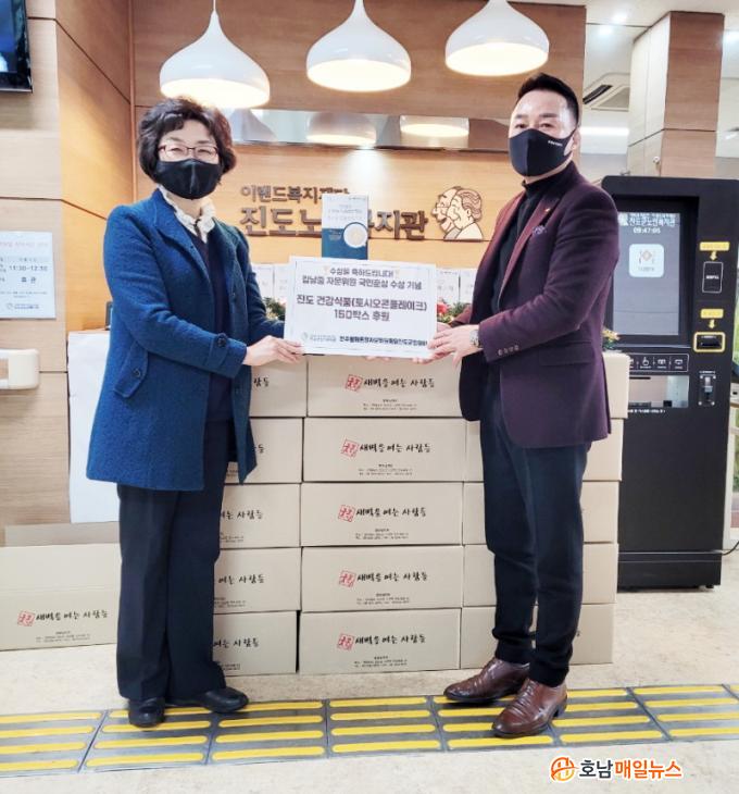 DH ±×·ì ±è³²Áß È¸Àå°ú ÀÓÁ÷¿øµéÀº Áö³ 20ÀÏ ÁøµµÀ¾¿¡ À§Ä¡ÇÑ Áøµµ±ºÀå¾ÖÀÎÁ¾ÇÕº¹Áö°ü°ú Áøµµ³ëÀκ¹Áö°üÀ» ã¾Æ Áøµµ °Ç°½ÄǰÀÎ Åä½Ã¿À ÄÜÇ÷¹ÀÌÅ©¸¦ °¢°¢ 150¹Ú½º¾¿, ÃÑ 300¹Ú½º(¾à 500¸¸¿ø »ó´ç)¸¦ ÈÄ¿øÇß´Ù.