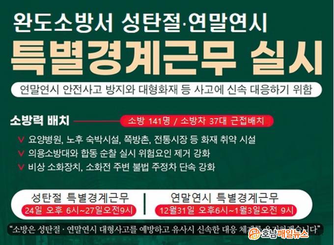 ¼ºÅºÀý ±â°£ 24ÀϺÎÅÍ 27ÀϱîÁö 3Àϰ£, ¿¬¸»¿¬½Ã ±â°£ 12¿ù 31ÀϺÎÅÍ ´ÙÀ½ÇØ 1¿ù 3ÀϱîÁö Ưº°°æ°è±Ù¹« ±â°£À¸·Î Á¤Çϰí, Àοø 798¸í(¼Ò¹æ°ø¹«¿ø 141, Àǹ«¼Ò¹æ¿ø 3, ÀÇ¿ë¼Ò¹æ´ë¿ø 654) ¼Ò¹æÀåºñ 37´ë µî °¡¿ë ¼Ò¹æ·ÂÀ» 100% µ¿¿øÇÏ¿© Ãʱâ´ëÀÀü°è¸¦ °ÈÇÑ´Ù.