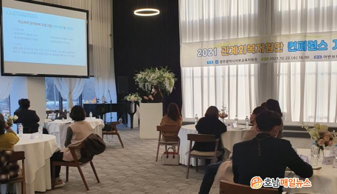 ±¤ÁÖ¼ºÎ±³À°Áö¿øÃ» ¹ÚÁÖÁ¤ ±³À°ÀåÀº ¡°Çб³Æø·Â »ç¾Èó¸® Àü °úÁ¤¿¡¼ ÇлýµéÀÇ °¥µî ÇØ°á°ú °ü°èȸº¹À» À§Çؼ °ü°èȸº¹Áö¿ø´ÜÀÇ ¿ªÇÒÀÌ ¸Å¿ì Å©´Ù¸ç, À̹ø ÄÁÆÛ·±½º°¡ ÇâÈÄ Çб³Æø·Â¿¡ µû¸¥ °ü°èȸº¹ »ç¾÷¿¡ ÀÖ¾î ¼±Á¦Àû ´ëÀÀü°è ¹× ÇöÀå ¹ÐÂøÇü Áö¿øÃ¼°è ±¸Ãà¿¡ ±â¿©ÇÒ °ÍÀ¸·Î ±â´ëµÈ´Ù¡±°í ¸»Çß´Ù.