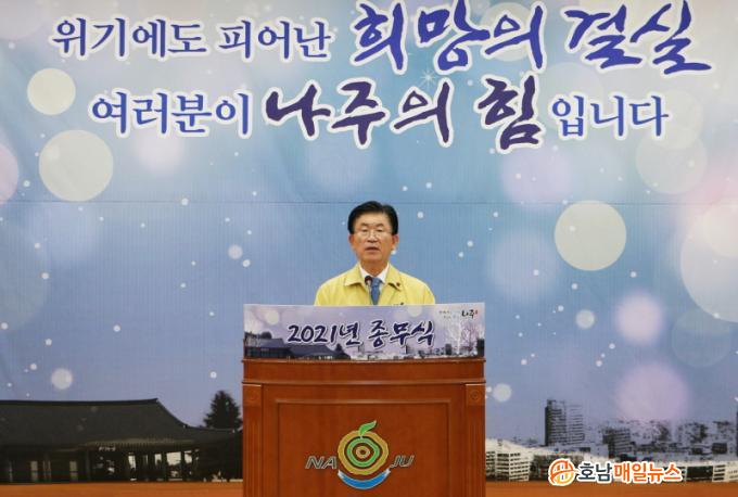 ÇÑÆí, °ÀÎ±Ô ½ÃÀåÀº ¡°2021³âÀº ½Ã ½Â°Ý 40ÁÖ³âÀ» ¸Â¾Æ ³ªÁÖ »õ¿ª»çÀÇ Àüȯ±â¸¦ ¸ÂÀÌÇØ È£³²ÀÇ Á߽ɵµ½Ã, ¿¡³ÊÁö¼öµµ ³ªÁÖ¸¦ ¸¸µå´Â ¼Ò¸íÀ» ´ÙÇØ¿Â ÇØ¿´´Ù¸ç, À¯·Ê¾ø´Â Äڷγª Àå±âÈ °¡¿îµ¥ ÁöÇý¿Í ¿ª·®À» ¸ð¾ÆÁֽŠ12¸¸ ½Ã¹Î ¿©·¯ºÐÀÇ ¼º¿ø°ú Àû±ØÀûÀÎ Âü¿©¿¡ °¨»çµå¸°´Ù¡±°í ¹àÇû´Ù.