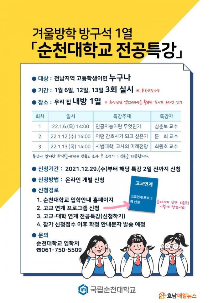 ¼øÃµ´ëÇб³ ÃÖ¼öÀÓ ÀÔÇÐóÀåÀº ¡°2021Çг⵵ °í±³-´ëÇÐ ¿¬°è Àü°øÆ¯°Àº À̹ø Çг⵵¿¡ óÀ½ ½Ç½ÃÇÑ ÇÁ·Î±×·¥À¸·Î Áö¿ª °í±³ÀÇ Å« È£ÀÀÀ» ¾ò¾úÀ¸¸ç, ±× ¼º¿ø¿¡ ÈûÀÔ¾î °Ü¿ï¹æÇп¡µµ ½Ç½ÃÇÏ°Ô µÇ¾ú´Ù¶ó¸ç, ¾ÕÀ¸·Îµµ ÇлýµéÀÌ Áø·Î ÁøÇп¡ ´ëÇÑ Á¤º¸¸¦ ¾òÀ» ¼ö ÀÖµµ·Ï ´Ù¾çÇÑ ÇÁ·Î±×·¥À» ÁغñÇÏ¿© Á¦°øÇϵµ·Ï ÇϰڴÙ.¡±¶ó°í ¹àÇû´Ù.