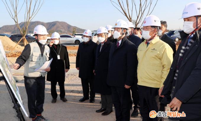 ÇöÀå¿¡¼ °ø»ç °ü°èÀڷκÎÅÍ °ø»ç ÁøÇà ÃßÁø »óȲ µîÀ» µè°í, ƯÈ÷ ȤÇѱâ¿Í ÇØºù±â °Ç¼³ ÇöÀåÀÇ ¾ÈÀü »ç°í ¹æÁö¸¦ À§ÇÑ ÇöÀå°ü¸®¿Í Äڷγª19 Áö¿ª ÀüÆÄ ¹æÁö¸¦ À§ÇÑ ÇöÀ广¿ª öÀú µîÀ» °Á¶Çß´Ù.