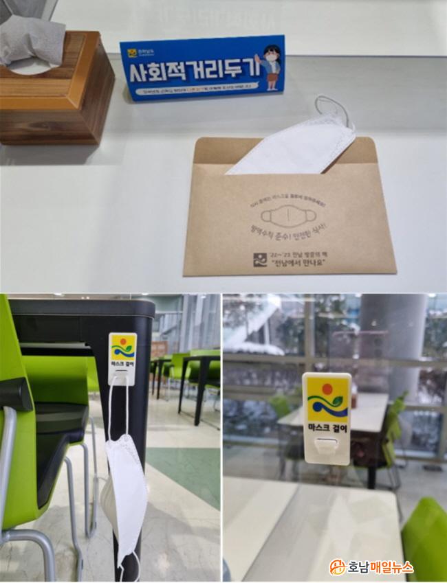 Àü³²µµ °ü°èÀÚ´Â ¡°Äڷγª19 °¨¿° ¹× È®»êÀ» ¸·±â À§ÇØ ¸¶½ºÅ©¸¦ Àß Âø¿ëÇÏ´Â °Ô Áß¿äÇÏ´Ù¡±¸ç ¡°ºÎµæÀÌÇÏ°Ô ½Ä´ç¿¡¼ ¸¶½ºÅ©¸¦ Àá½Ã ¹þ°í ½Ä»ç¸¦ ÇÏ´Â °æ¿ì À§»ýÀûÀÎ 1ȸ¿ë ¸¶½ºÅ© º¸°üºÀÅõ¿Í ¸¶½ºÅ© °ÉÀ̸¦ Æí¸®ÇÏ°Ô ÀÌ¿ëÇßÀ¸¸é ÁÁ°Ú´Ù¡±°í ´çºÎÇß´Ù.