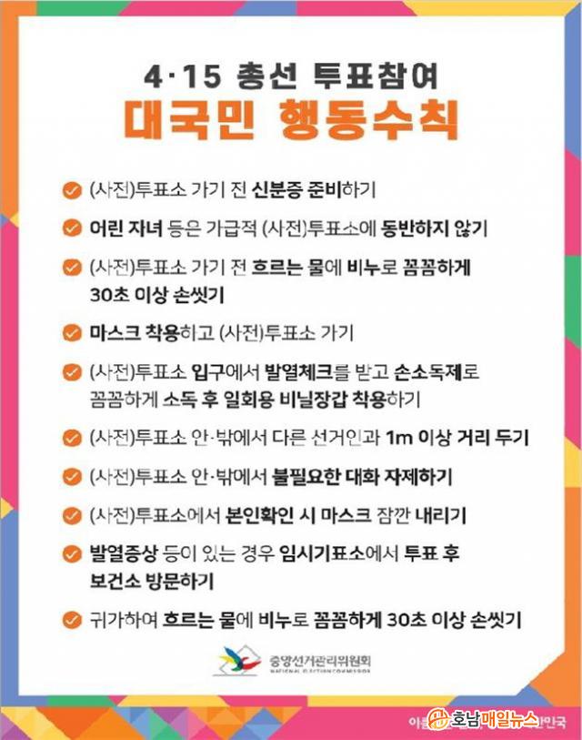 ¶ÇÇÑ,¡®4.15 ÃѼ± ÅõÇ¥Âü¿© ±¹¹Î Çൿ¼öÄ¢¡¯(ºÙÀÓ 2 ÂüÁ¶)¿¡ µû¶ó ÅõÇ¥ÇÏ·¯ ¿À´Â À¯±ÇÀÚ´Â ¸¶½ºÅ©¸¦ Âø¿ëÇϰí ÅõÇ¥¼Ò¿¡¼´Â ´ëȸ¦ ÀÚÁ¦Çϸç, 1m ÀÌ»ó °Å¸® µÎ±â µî ÅõÇ¥»ç¹«¿øÀÇ Áú¼À¯Áö ¿äû¿¡ Àû±ØÀûÀ¸·Î ÇùÁ¶ÇØ ÁÙ °ÍÀ» ´çºÎÇÏ¿´´Ù.