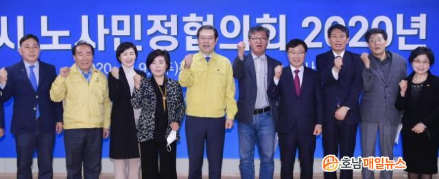 °áÀǹ®¿¡¼ ½Ã ³ë»ç¹ÎÁ¤ÇùÀÇȸ´Â ³ëµ¿°è¿¡´Â ¡°Áö³ 4¿ù2ÀÏ ³ëµ¿°è°¡ »ç¾÷ ÃßÁøÀÇ ±Ù°£ÀÎ ³ë»ç»ó»ý¹ßÀüÇùÁ¤¼ ÇÕÀÇÆÄ±â¸¦ ¼±¾ðÇϸé¼, ±¤ÁÖÇü ÀÏÀÚ¸® »ç¾÷ÀÌ ÃÖ´ëÀÇ À§±â¿¡ ºÀÂøÇß´Ù¡±¸é¼ ¡°À̰ßÀÌ ÀÖ´Ù¸é °ø½Ä ÇùÀDZⱸÀÎ ³ë»ç¹ÎÁ¤ÇùÀÇȸ Ʋ ¼Ó¿¡¼ Ä¡¿ÇÑ ³íÀǸ¦ ÅëÇØ ¹®Á¦¸¦ ÇØ°áÇÏ´Â °ÍÀÌ Ã¥ÀÓÀÖ´Â ÀÚ¼¼ÀÏ °ÍÀÌ´Ù¡±°í °Á¶Çß´Ù.