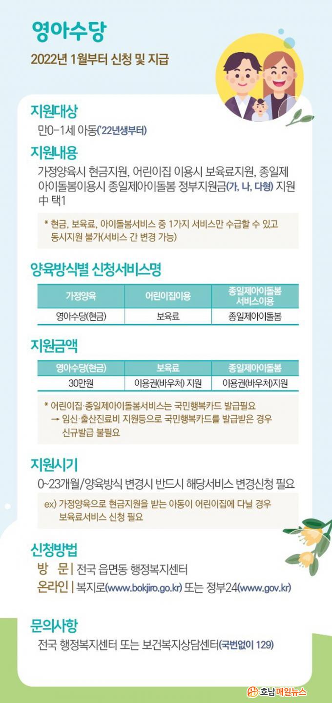 °¡Á¤¿¡¼ ¾çÀ° ½Ã ¸Å¿ù 30¸¸ ¿ø¾¿ Çö±ÝÀ¸·Î Áö¿ø¹ÞÀ» ¼ö ÀÖÀ¸¸ç, ¾î¸°ÀÌÁý ¹× Á¾ÀÏÁ¦ ¾ÆÀ̵¹º½¼ºñ½º ÀÌ¿ë ½Ã¿¡´Â °¢°¢ º¸À°·á ¹Ù¿ìó, Á¾ÀÏÁ¦ ¾ÆÀ̵¹º½ ¹Ù¿ìó·Î Áö¿øµÈ´Ù. ´Ù¸¸, Áߺ¹Áö¿øÀº ºÒ°¡ÇÏ´Ù.