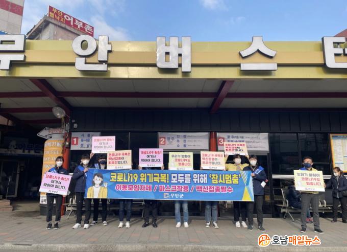 ¶ÇÇÑ 27ÀÏ¿¡´Â ¹«¾È±º Àç³¾ÈÀü´ëÃ¥º»ºÎ °ü°èÀÚµéÀÌ Àü³²µµÃ» ¾Õ »ç°Å¸®¿¡¼ Ãâ±Ù½Ã°£ Á÷ÀåÀÎ µîÀ» ´ë»óÀ¸·Î °Å¸® Ä·ÆäÀÎÀ» ÅëÇØ ¼³ ¿¬ÈÞ ¡®Àá½Ã ¸ØÃ㡯¿¡ Àû±Ø µ¿ÂüÇØ ÁÙ °ÍÀ» È£¼ÒÇßÀ¸¸ç, ÀÌÈÄ ¹«¾ÈÀ¾ ¹ö½ºÅ͹̳ΠÀÏ¿ø¿¡¼ °Å¸® È«º¸¸¦ ÀÌ¾î ³ª°¬´Ù.