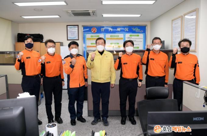 [È£³²¸ÅÀÏ´º½º] À̿뼷 ±¤ÁÖ±¤¿ª½ÃÀåÀÌ 2ÀÏ ¿ÀÈÄ Ã·´ÜÁö±¸´ë¸¦ ¹æ¹®ÇÏ¿© ¼³ ¿¬ÈÞ ºñ»ó±Ù¹«ÀÚµéÀ» °Ý·ÁÇϰí ÀÖ´Ù.