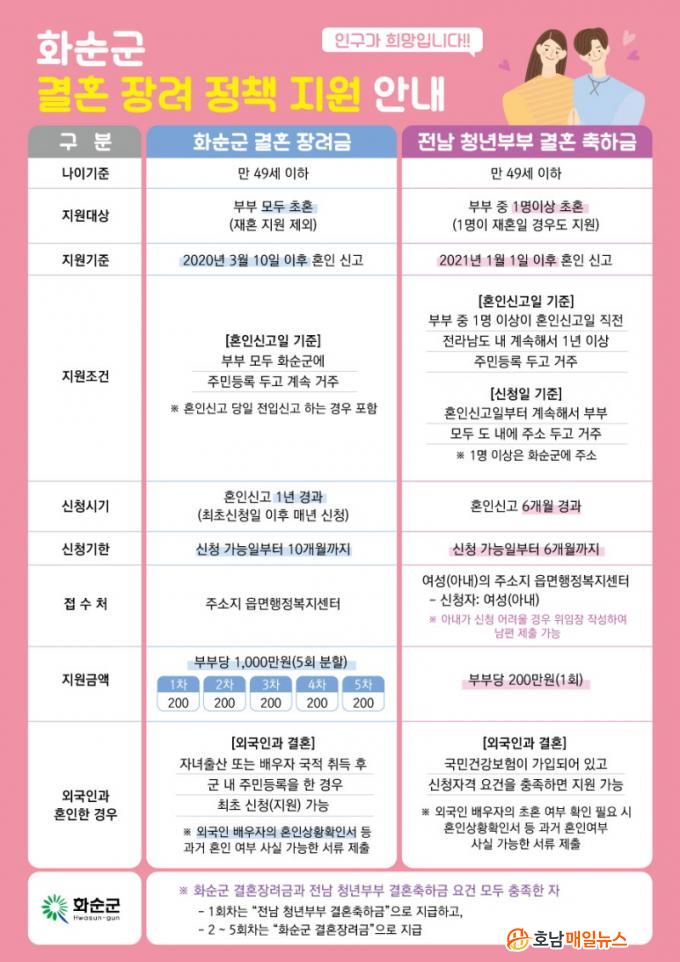 ÇÑÆí, ȼø±º °ü°èÀÚ´Â ¡°Àü³²µµ¿Í ȼø±ºÀÇ Ã»³â °áÈ¥Àå·Á Á¤Ã¥ÀÌ »õ·Ó°Ô Ãâ¹ßÇϴ û³â ½ÅÈ¥ ºÎºÎ¿¡°Ô °æÁ¦Àû ±â¹Ý ¸¶·Ã¿¡ µµ¿òÀÌ µÇ±æ ¹Ù¶õ´Ù¡±¸ç ¡°Áö¿ø Á¤Ã¥¿¡ µû¶ó Áö¿ø ´ë»ó, Áö¿ø ±âÁØÀϰú ½Åû ½ÃÇÑ µî¿¡ Â÷À̰¡ ÀÖÀ¸´Ï ²Ä²ÄÈ÷ È®ÀÎÇÏ°í ½Åû¹Ù¶õ´Ù¡±°í ´çºÎÇß´Ù.