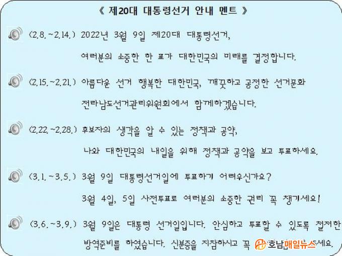 Á¦°ø¹æ¹ýÀº Á¦20´ë ´ëÅë·É¼±°Å¿Í Á¦8ȸ Àü±¹µ¿½ÃÁö¹æ¼±°ÅÀÇ ¼±°ÅÀÏ 1°³¿ù ÀüºÎÅÍ ¼±°ÅÀϱîÁö(´ë¼± : 2. 8.¢¦3. 9. / Áö¼± : 5. 3.¢¦6. 1.) Àü¶ó³²µµ ÀüÁö¿ª¿¡¼ Ƽ¸Ê ±æ¾È³» ÀÌ¿ë½Ã ¾È³»½ÃÀÛ ¸àÆ®¿Í ÇÔ²² ¼±°ÅÁ¤º¸°¡ À½¼ºÀ¸·Î »ç¿ëÀÚ¿¡°Ô Àü´ÞµÇ´Â ¹æ½ÄÀÌ´Ù.