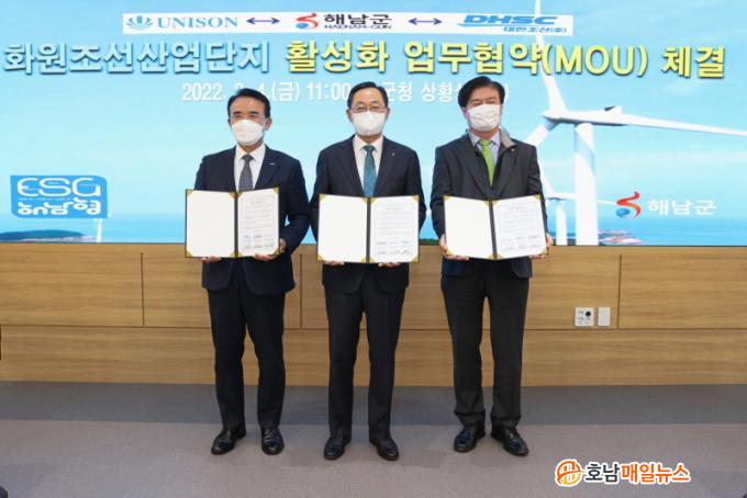 ÇØ³²±ºÀº 4ÀÏ À¯´Ï½¼(ÁÖ), ´ëÇÑÁ¶¼±(ÁÖ)°ú È¿øÁ¶¼±»ê¾÷´ÜÁö Ȱ¼ºÈ¸¦ À§ÇÑ ¾÷¹«Çù¾àÀ» ü°áÇß´Ù. ±ºÃ» »óȲ½Ç¿¡¼ ¿¸° À̳¯ ¾÷¹«Çù¾à½Ä¿¡´Â ¸íÇö°ü ÇØ³²±º¼ö, À¯´Ï½¼(ÁÖ) Çãȵµ ´ëÇ¥ÀÌ»ç, ´ëÇÑÁ¶¼±(ÁÖ) Á¤´ë¼º ´ëÇ¥À̻簡 Âü¼®ÇØ ÇØ³²±º È¿ø»ê´ÜÀ» Á¤ºÎ´ºµô»ç¾÷À¸·Î ÃßÁøÇϰí ÀÖ´Â ÇØ»ódz·Â¹ßÀü»ç¾÷ÀÇ ¹èÈÄ´ÜÁö·Î Á¶¼ºÇØ ³ª°¡´Âµ¥ »óÈ£Çù·Â¿¡ ³ª°¡±â·Î Çß´Ù.