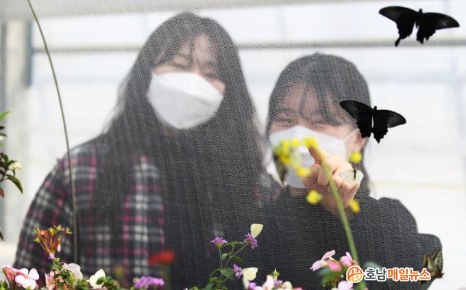 [È£³²¸ÅÀÏ´º½º] º½ÀÇ ½ÃÀÛÀ» ¾Ë¸®´Â ÀÔÃá(Ø¡õð)ÀÎ 4ÀÏ ¿À´Ã, Àü³² ÇÔÆò±º³ó¾÷±â¼ú¼¾ÅÍ ¿Â½ÇÀ» ãÀº ¹æ¹®°´µéÀÌ º½À» ¾Ë¸®´Â ³ªºñµéÀÇ ÈûÂù ³¯°¹ÁþÀ» ¹Ù¶óº¸°í ÀÖ´Ù.