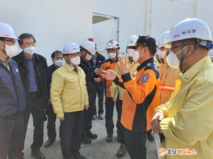 [È£³²¸ÅÀÏ´º½º] ±Ç¿ÀºÀ ¿©¼ö½ÃÀåÀÌ 11ÀÏ ¿ÀÀü ¿©¼ö±¹°¡»ê´Ü ³» ÇÑ °øÀå¿¡¼­ ¹ß»ýÇÑ Æø¹ß»ç°í ÇöÀåÀ» ã¾Æ »ç°í¼ö½À ¹× ÀθíÇÇÇØ »óȲÀ» Á¡°ËÇϰí ÀÖ´Ù.