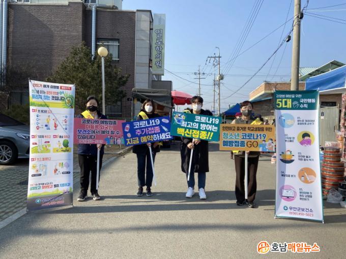 À̳¯ º¸°Ç¼Ò Á÷¿øµéÀº ¼ÒÇü Çö¼ö¸·, ÇÇÄÏ, ¾î±ú¶ì µîÀ» Ȱ¿ëÇØ ±º¹Îµé¿¡°Ô Äڷγª19 ¿¹¹æÁ¢Á¾ÀÇ Á߿伺°ú °¨¿°º´ ¿¹¹æ ¾ÈÀü¼öÄ¢, Äڷγª19 ¿¹¹æ Ãß°¡Á¢Á¾¿¡ ´ëÇØ ¾È³»Çß´Ù.