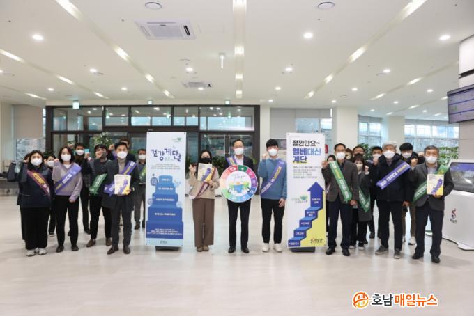 °Ç°°è´ÜÀº ÇØ³²Çü ESG¸¦ »ýȰ¼Ó¿¡¼ ½ÇõÇÒ ¼ö ÀÖ´Â °úÁ¦·Î, °øÁ÷ÀÚºÎÅÍ ¼Ö¼±¼ö¹üÇØ Âü¿©ÇÒ ¼ö ÀÖµµ·Ï Çß´Ù. °è´Ü°È±â È¿°ú´Â ªÀº ½Ã°£¿¡ ±Ù·Â¿îµ¿°ú ÇÔ²² À¯»ê¼Ò ¿îµ¿ÀÌ ÇÔ²² ÀÌ·ç¾îÁö´Â ÇÏü ±ÙÀ° ´Ü·Ã¿¡ ÃÖÀûÀÇ ¿îµ¿ÀÌ´Ù.