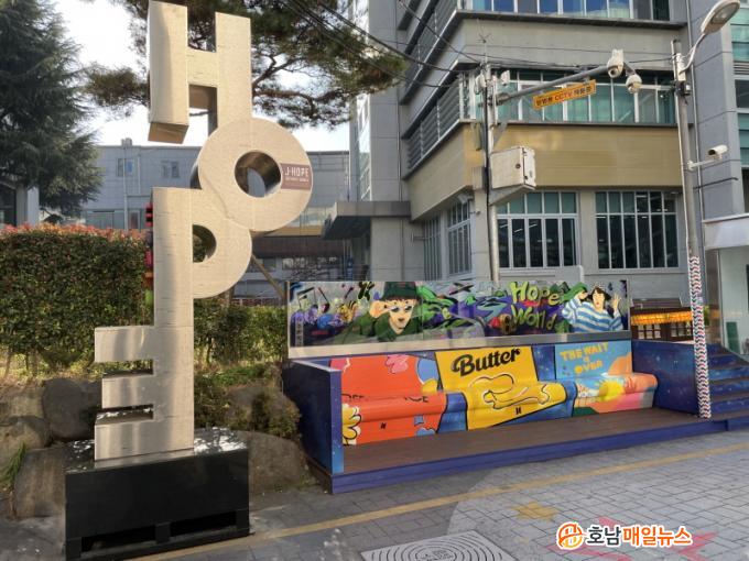 ±¤ÁÖ±¤¿ª½Ã´Â ÄÉÀÌÆË(K-POP) ½ºÅ¸ÀÇ °Å¸®¿¡ Á¦ÀÌÈ© È©¿ùµå(HOPE WORLD) º®È¿Í ·£µå¸¶Å©·Î À¯¸íÇÑ È©¿ùµå ÆÒ ¸Þ½ÃÁö Á¶Çü¹°À» ¼³Ä¡Çß´Ù. È©¿ùµå Á¶Çü¹°Àº Á¦ÀÌÈ©ÀÇ »ýÀÏÀÌ 2¿ù 18ÀÏÀÎ °Í¿¡ Âø¾ÈÇØ Àü ¼¼°è ÆÒµé·ÎºÎÅÍ 2¸¸1800°³ÀÇ ¸Þ½ÃÁö¸¦ ¹Þ¾Æ Áö³ 2020³â 11¿ù Á¶¼ºÇß´Ù.